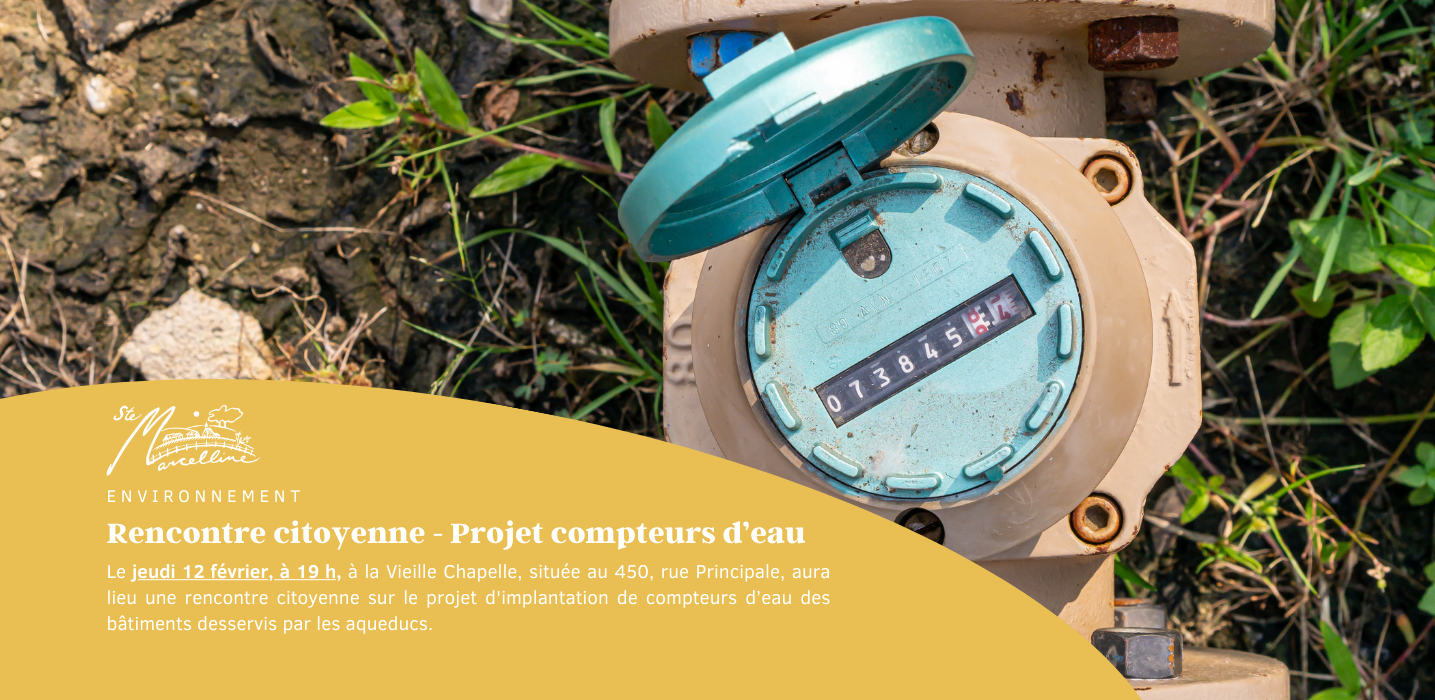Le ministère des Affaires municipales et de l’Habitation (MAMH) exige que la Municipalité de Sainte-Marcelline-de-Kildare procède à l’installation de compteurs d’eau, pour les bâtiments desservis par un de nos réseaux d’aqueduc, avant le 1er septembre 2026.